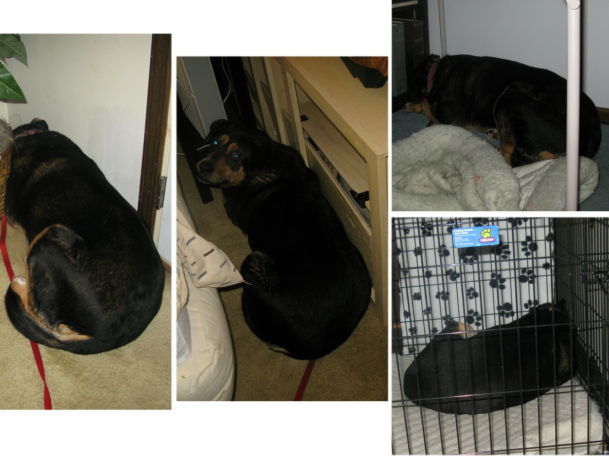 To feed her I had to bring her food bowl into the computer room, where we set up her water bowl. She was basically a two room dog that didn't seem to like being petted or getting any attention.