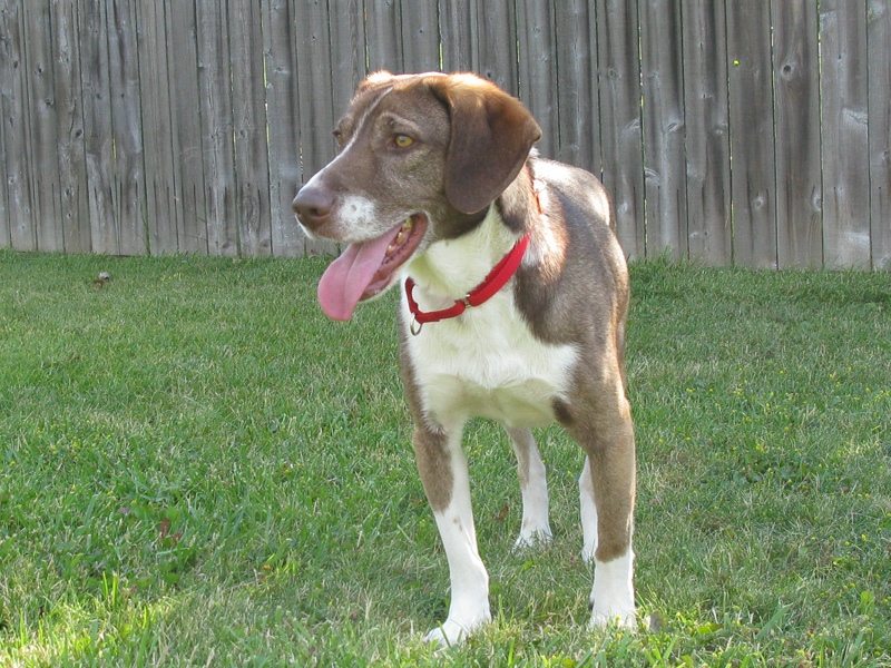 June, 2012. Our next foster was Bo, a two year old hound mix. According to IndyHumane Bo and his sister Sadie were “super under socialized. The world scares them.” We weren’t available to foster when they first came in, but I spent four or five long sessions working with Bo and Sadie at the shelter. Bo was fostered for several weeks by another couple and seemed to have done pretty well, but IndyHumane still wanted him to have more time in foster care while being available for adoption.