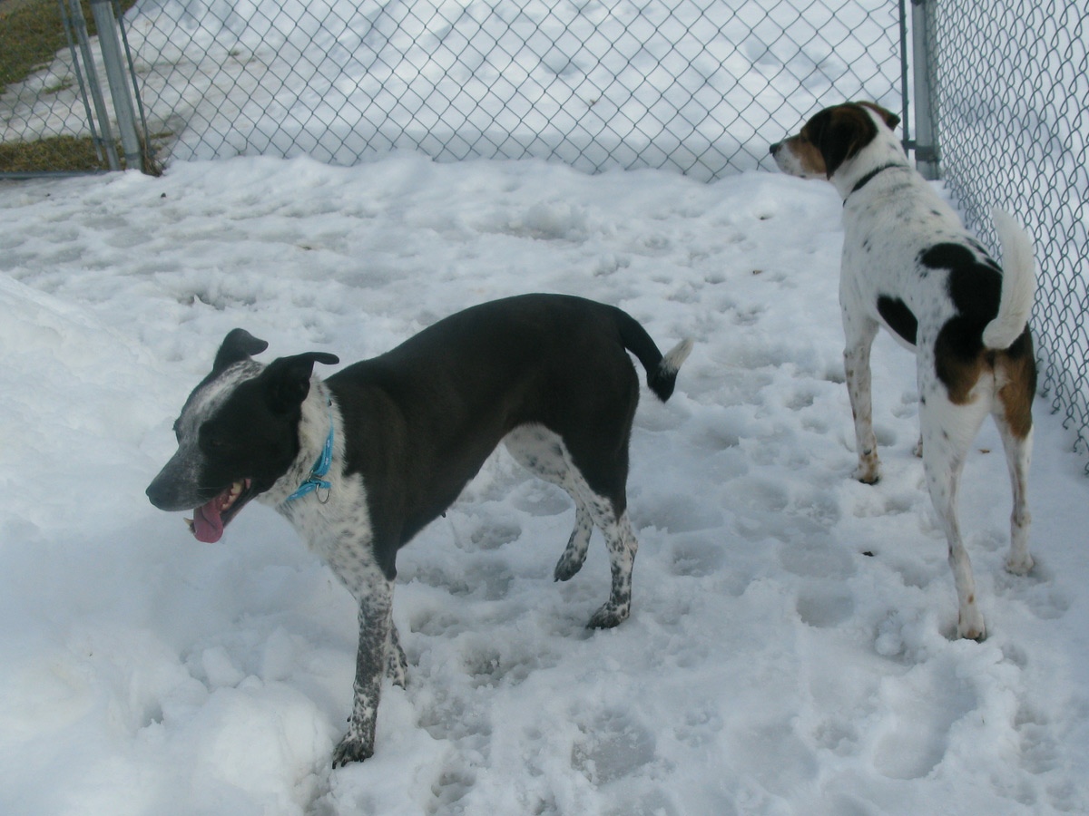 She tried to be dominate and snappy with Boomer at first so she got a firm correction. After that she seemed ok with sharing space with him, but they didn't play together.