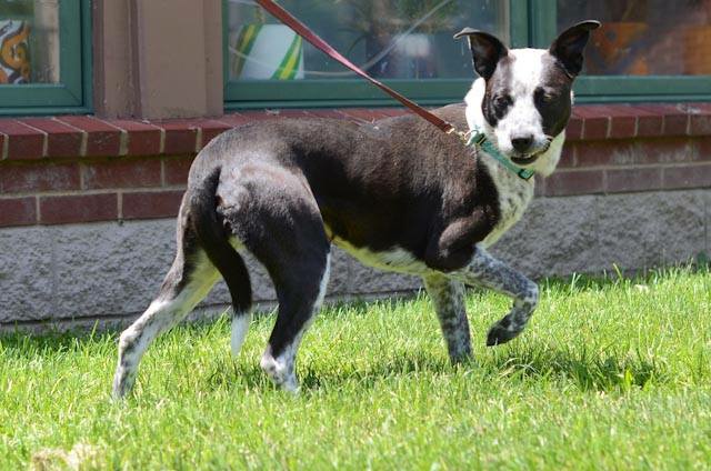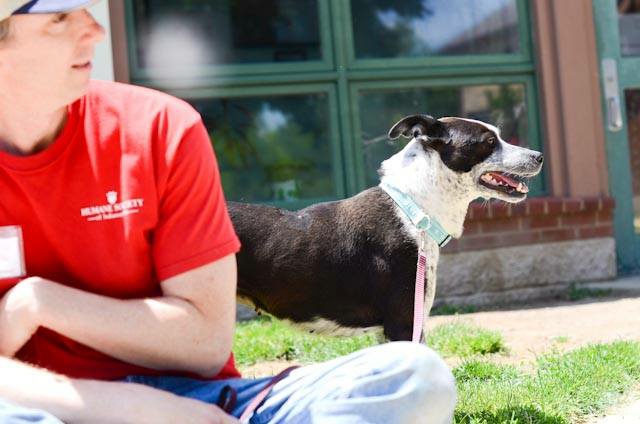 At this point it was easy to get her tail wagging and have her climb all over you giving kisses in the front yard. When volunteers walked by with dogs she now routinely trotted over to check them out.